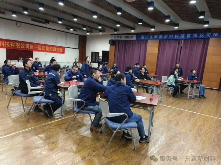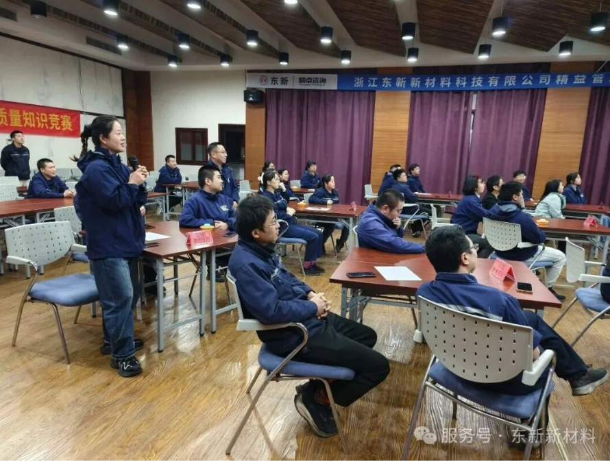 To comprehensively enhance employees’ quality awareness and deeply implement the principles of lean management, Zhejiang Dongxin New Materials Technology Co., Ltd. successfully held the first Lean Management Quality Knowledge Competition for 2025 on November 25. Jointly organized by the Human Resources Department and the Quality Department, with support from the Technical Department and all workshops, this competition aims to foster a strong atmosphere in which “everyone cares about quality and everyone values quality” through learning driven by competition and applying what is learned in practice.